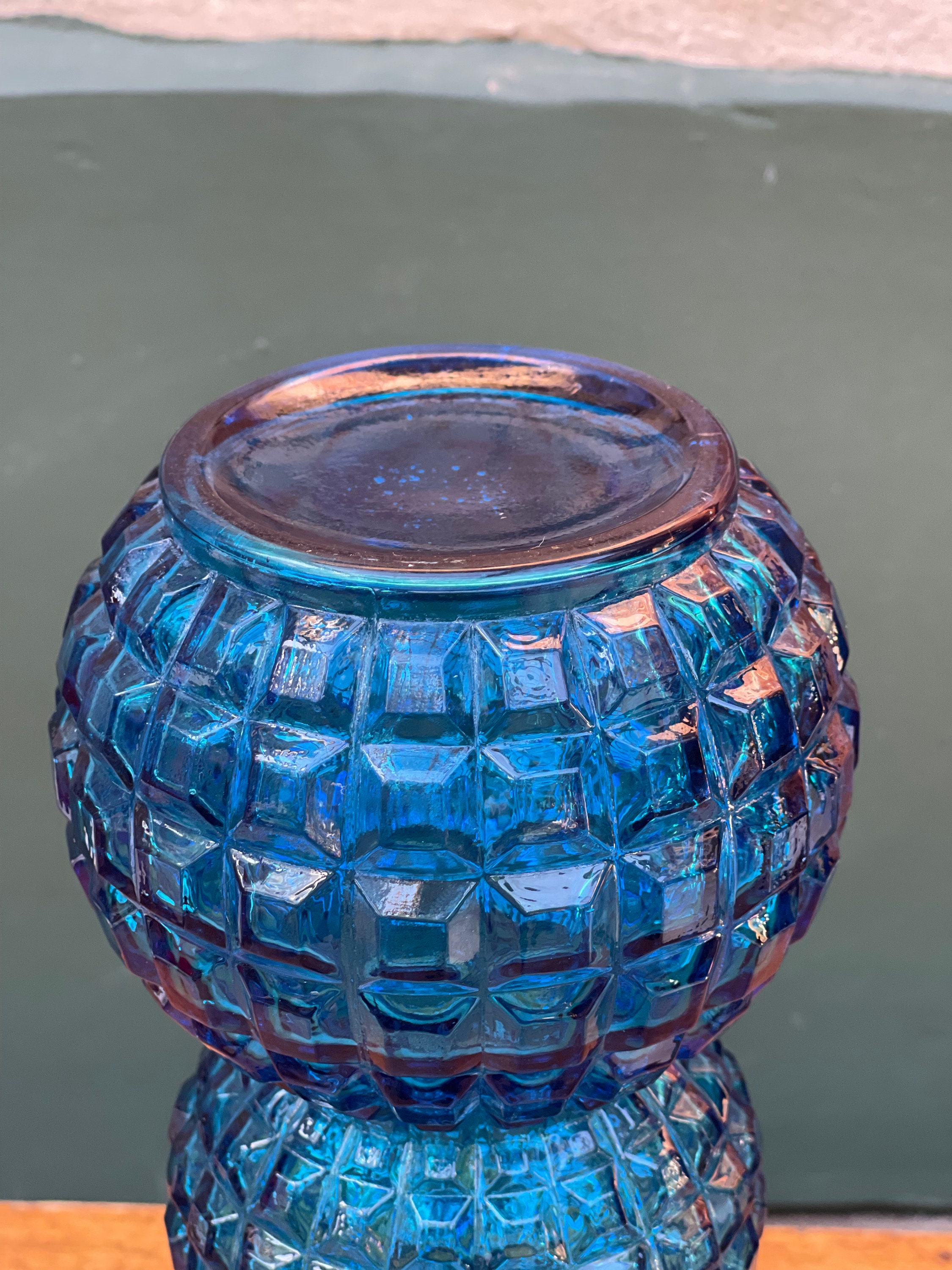 Genie Bottle Decanter in Blue - Vintage Italian Empoli Glass Triple Gourd Shape with Chunky Diamond Point Pattern