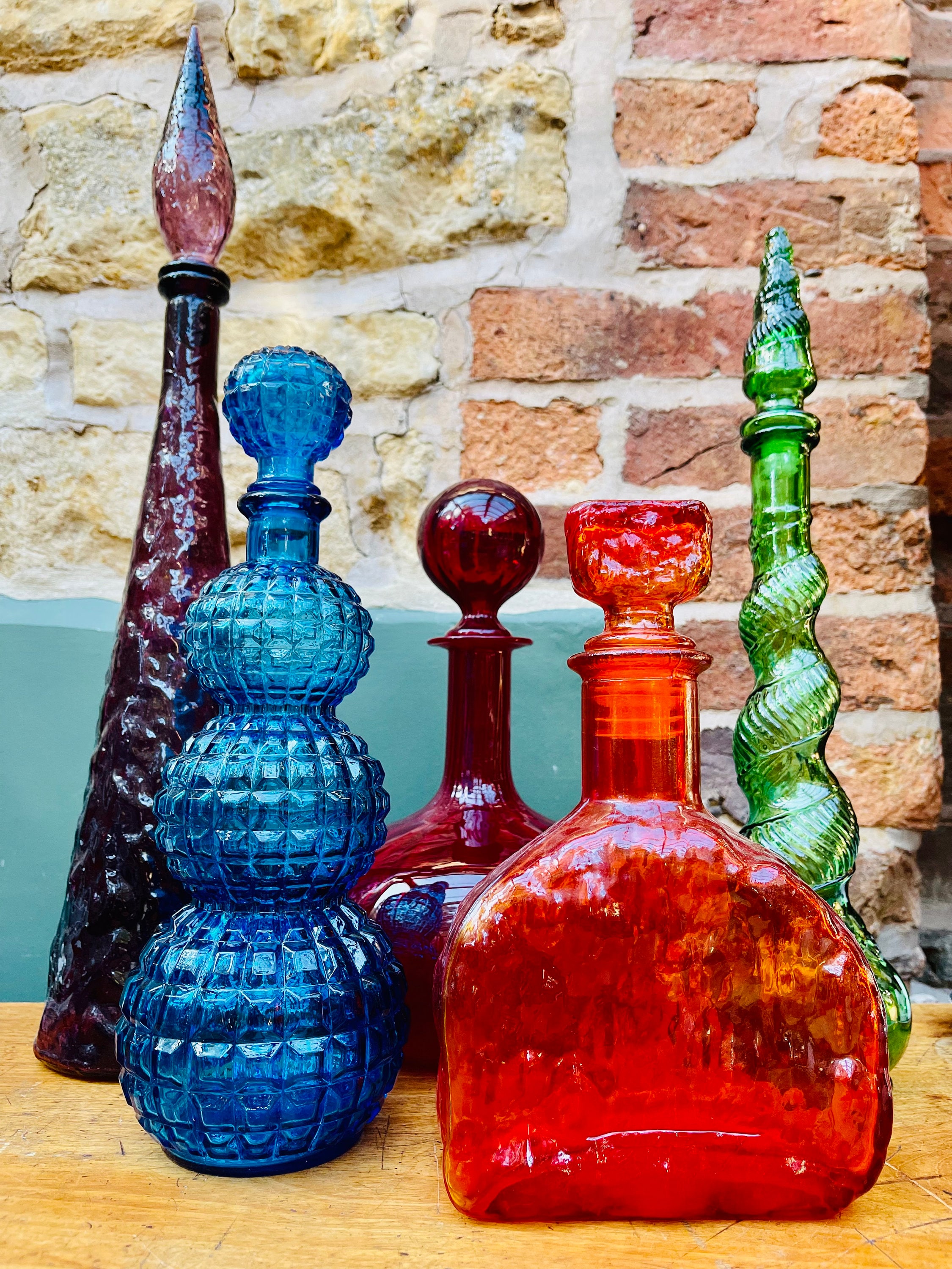 Always a wide range of genie bottles and colourful mid-century glass in stock, see my other items for sale at www.clutterfingers.com