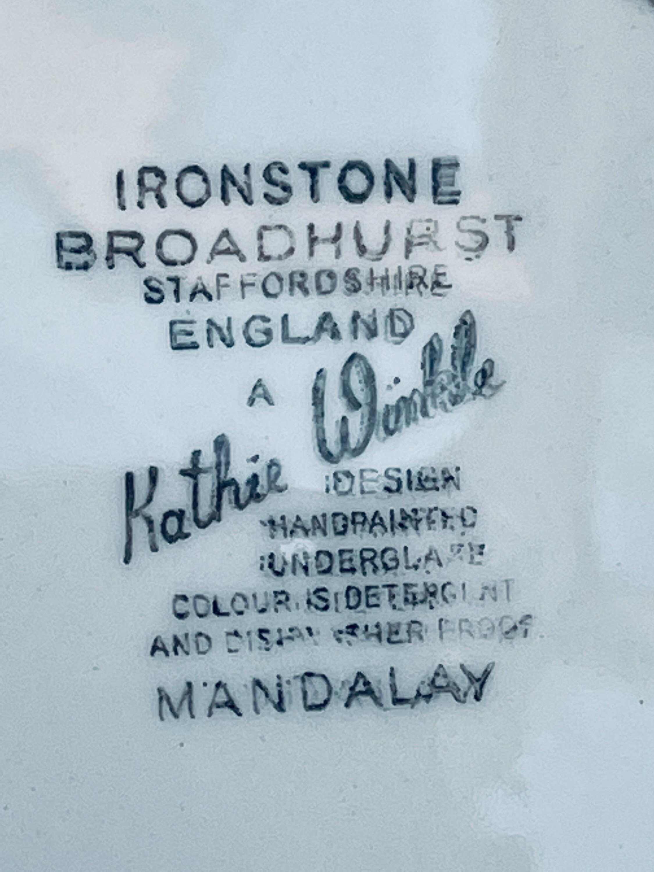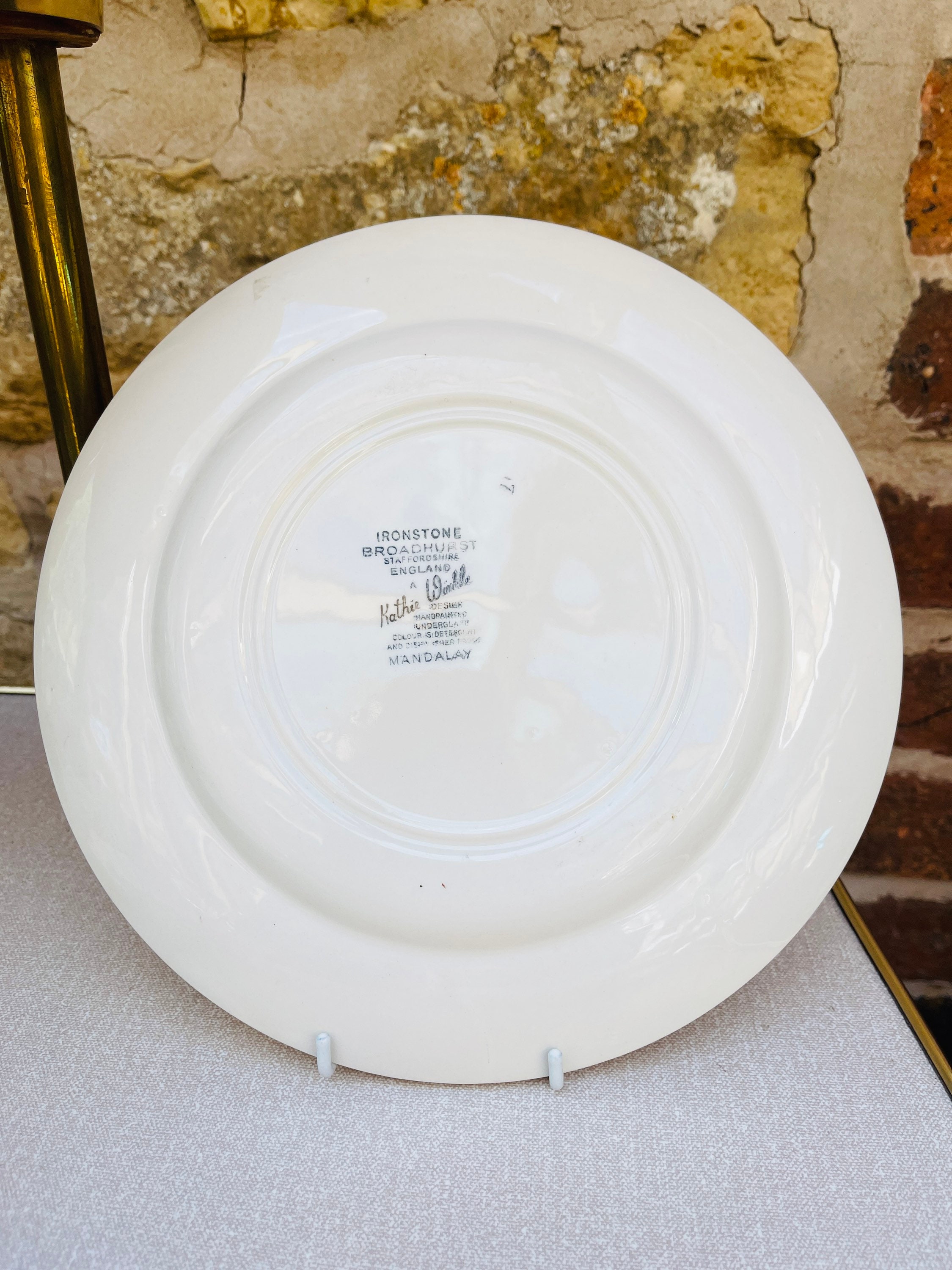 Vintage item made in Staffordshire, England. The plate bears the Broadhurst Kathie Winkle backstamp. Colours are still bright and true, and glazes glossy. No chips, cracks or crazing.