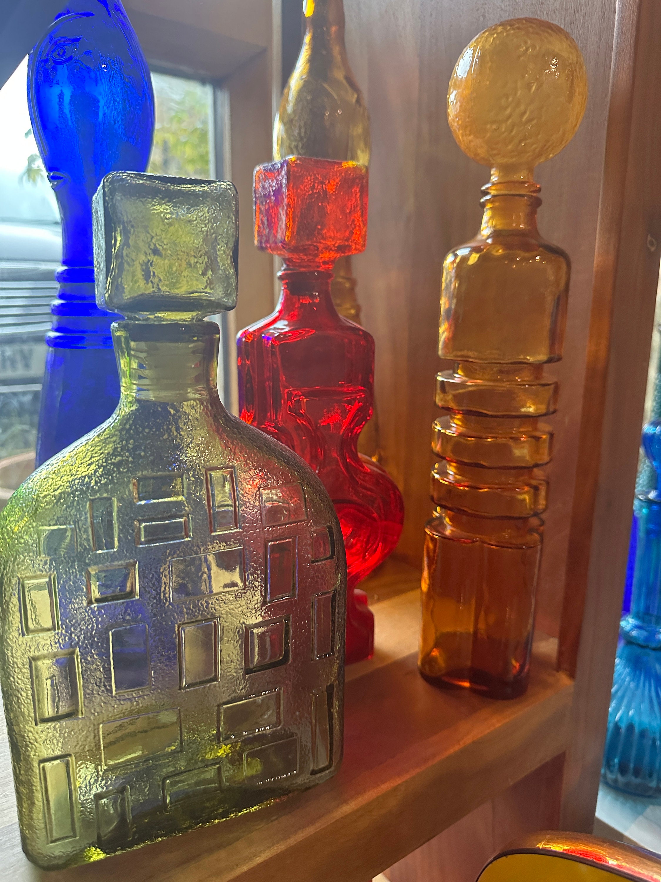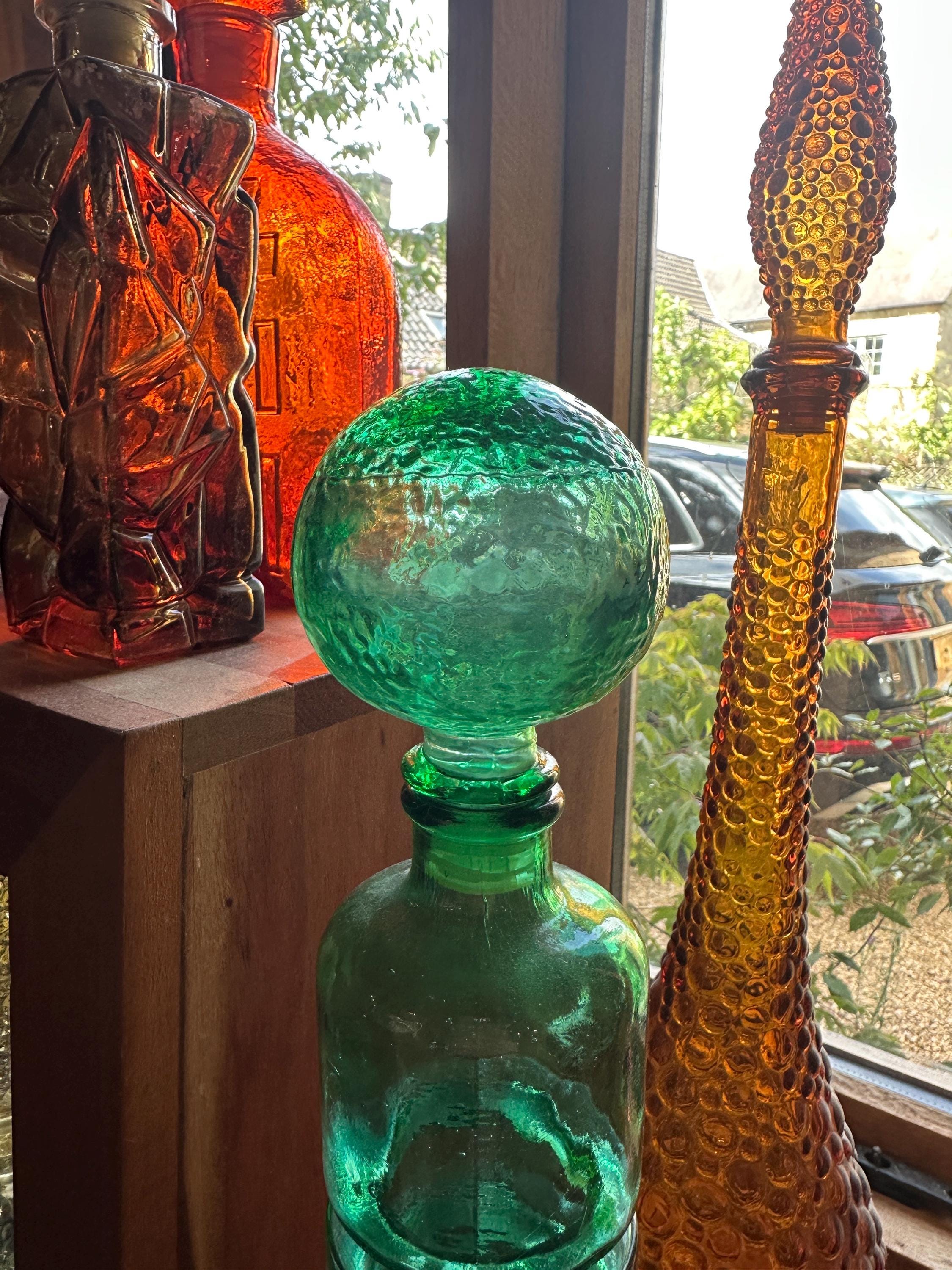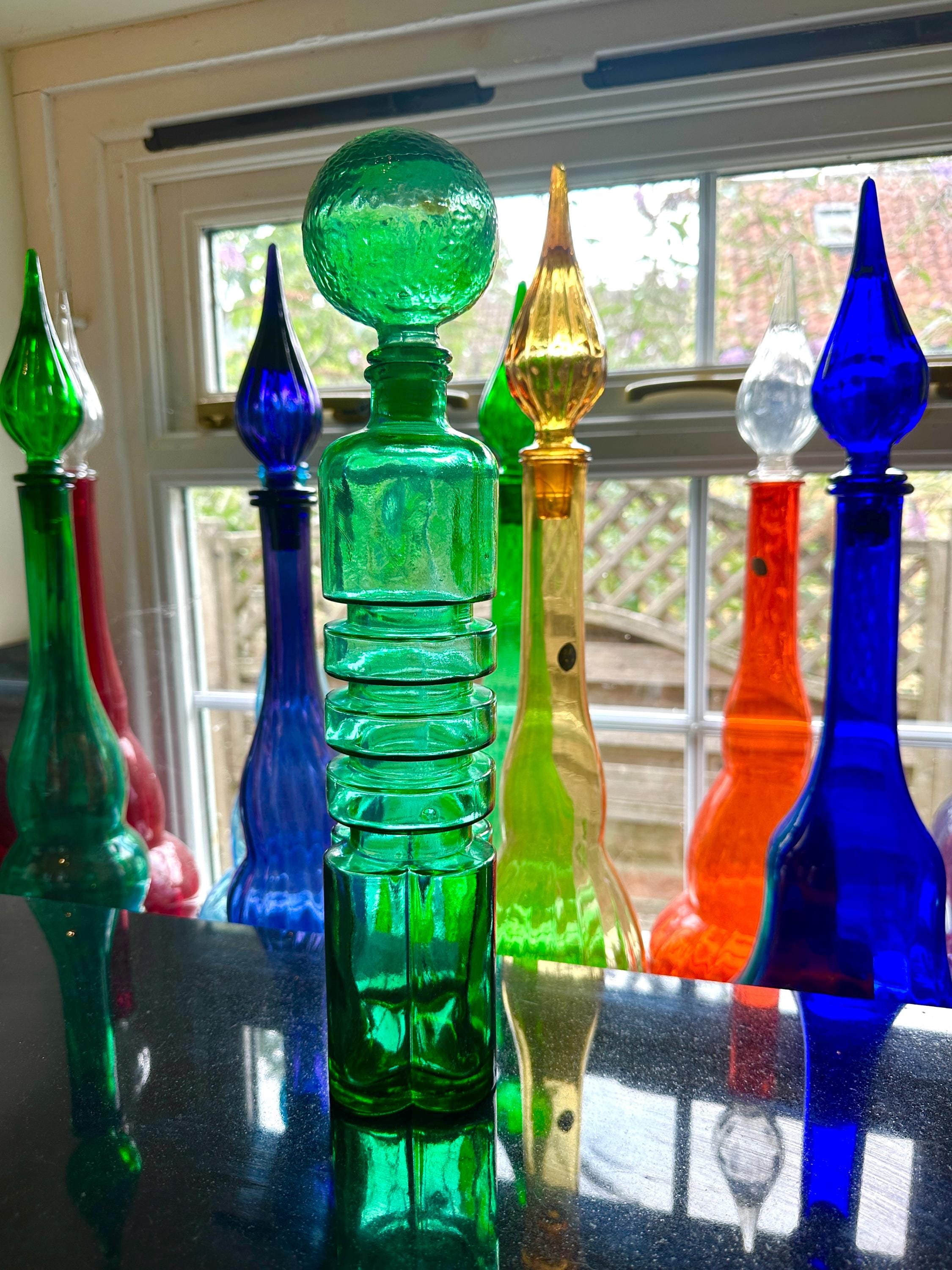 Rare and highly sought after, this is a striking mid-height Empoli bottle which displays well with all other sizes of genie. It was manufactured in at least 6 colours, including amber, green, blue, teal, red and clear.