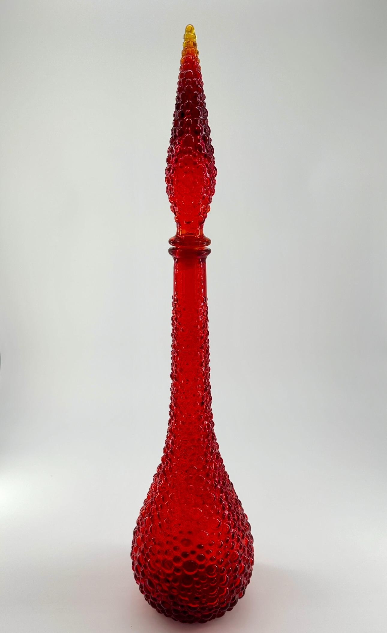 Empoli Genie Bottles In The Hobnail Pattern - Vintage Italian Glass Decorative Decanters Available In A Variety Of Colours, Including Amberina Red