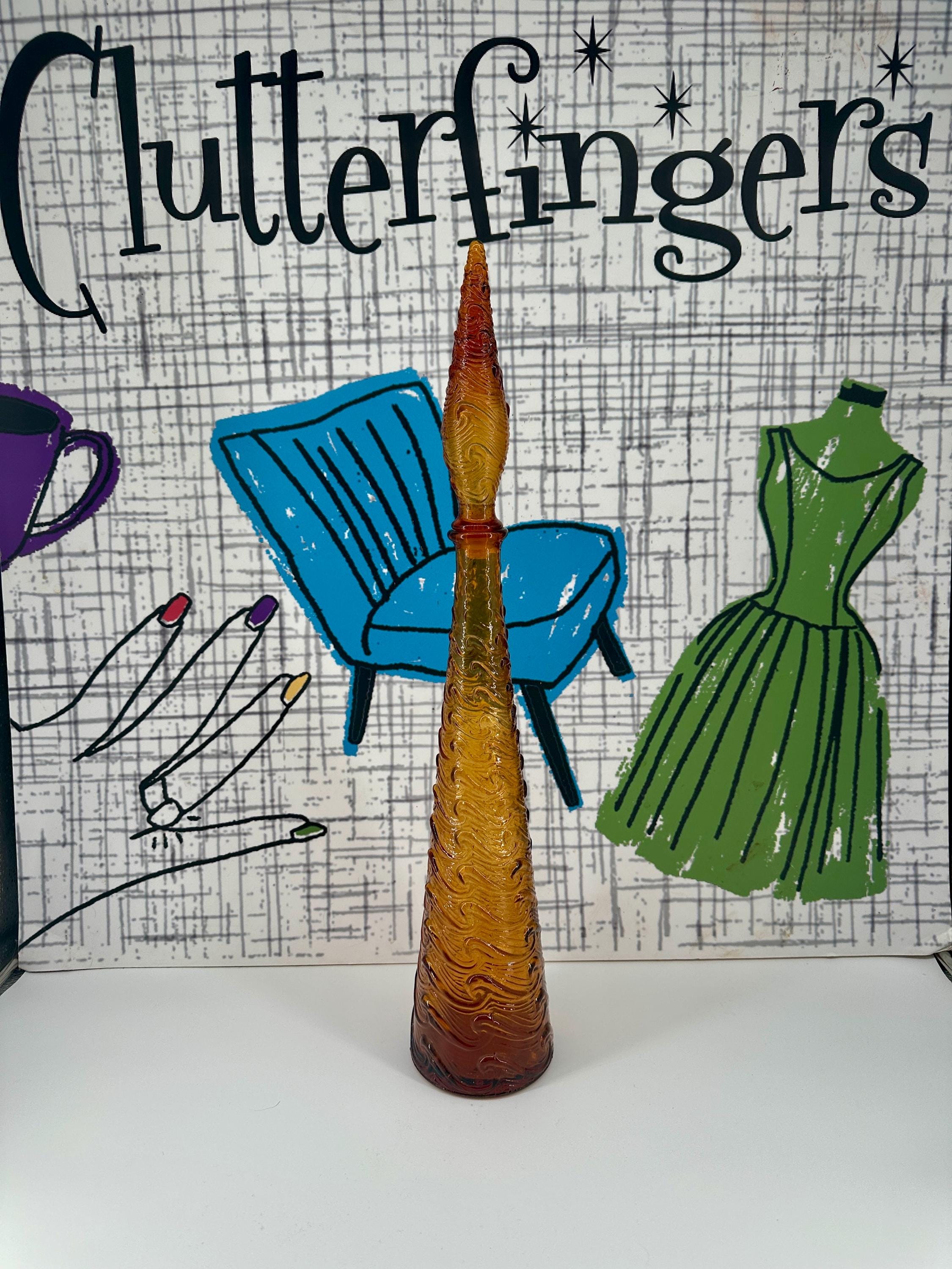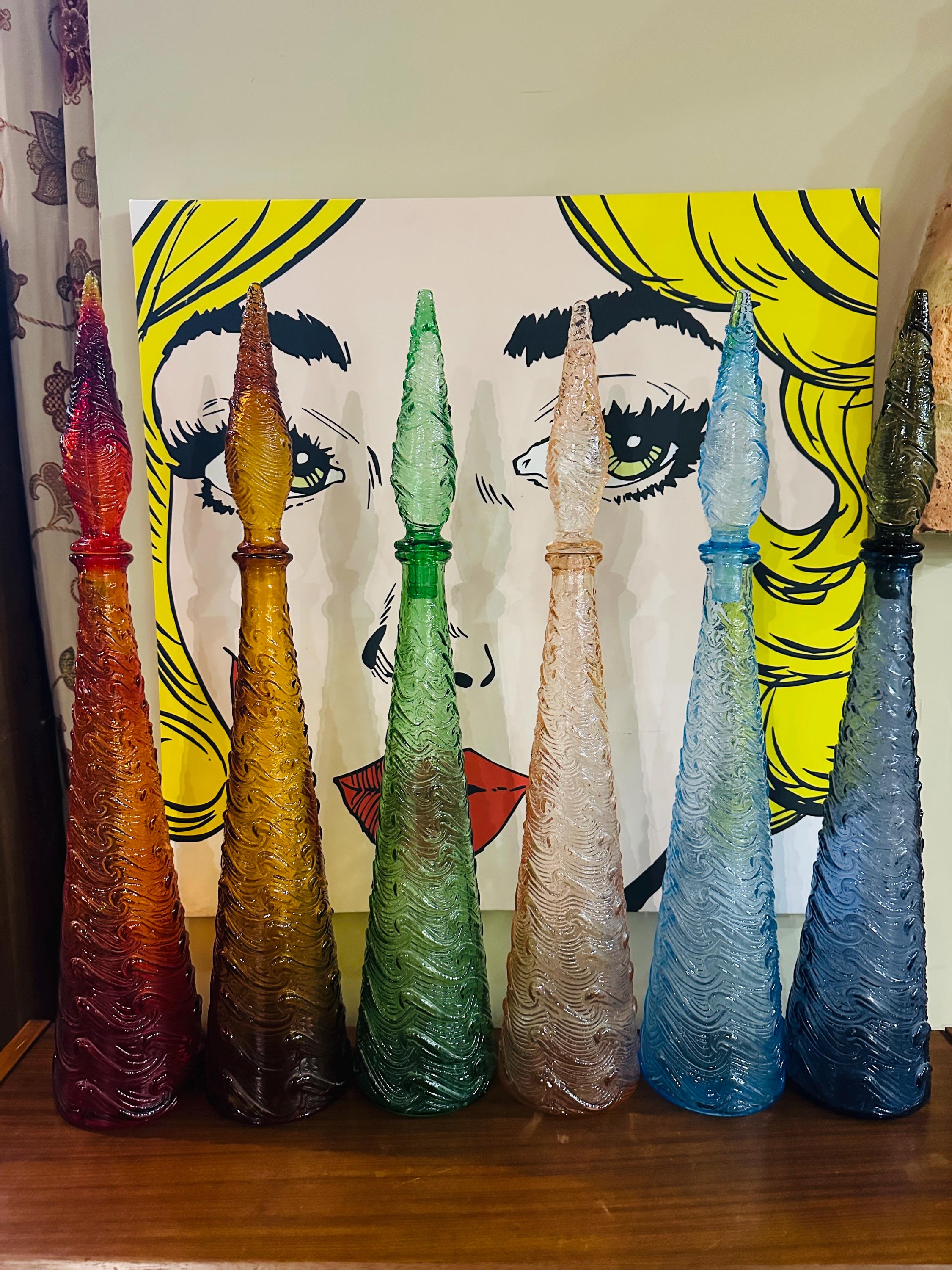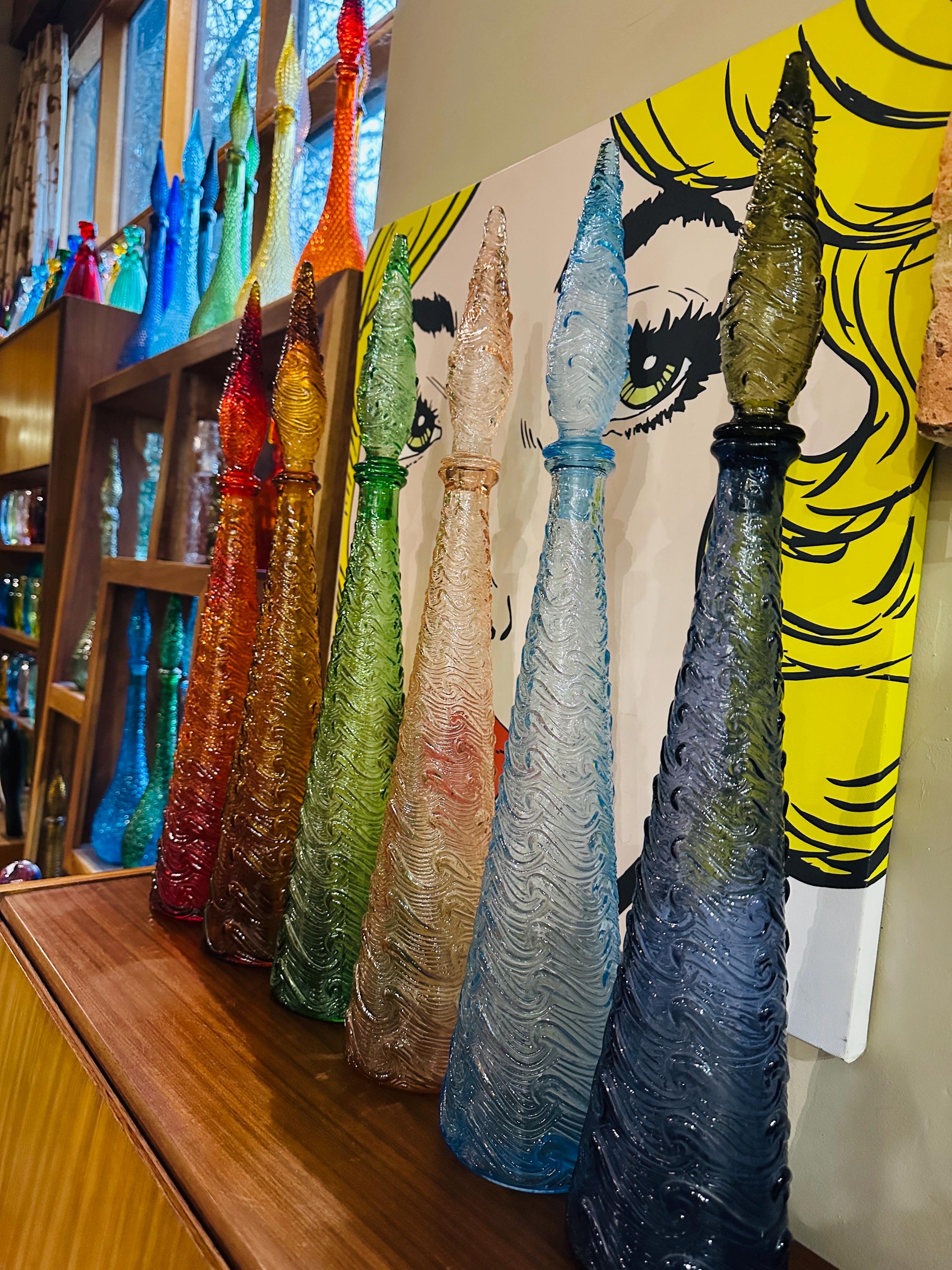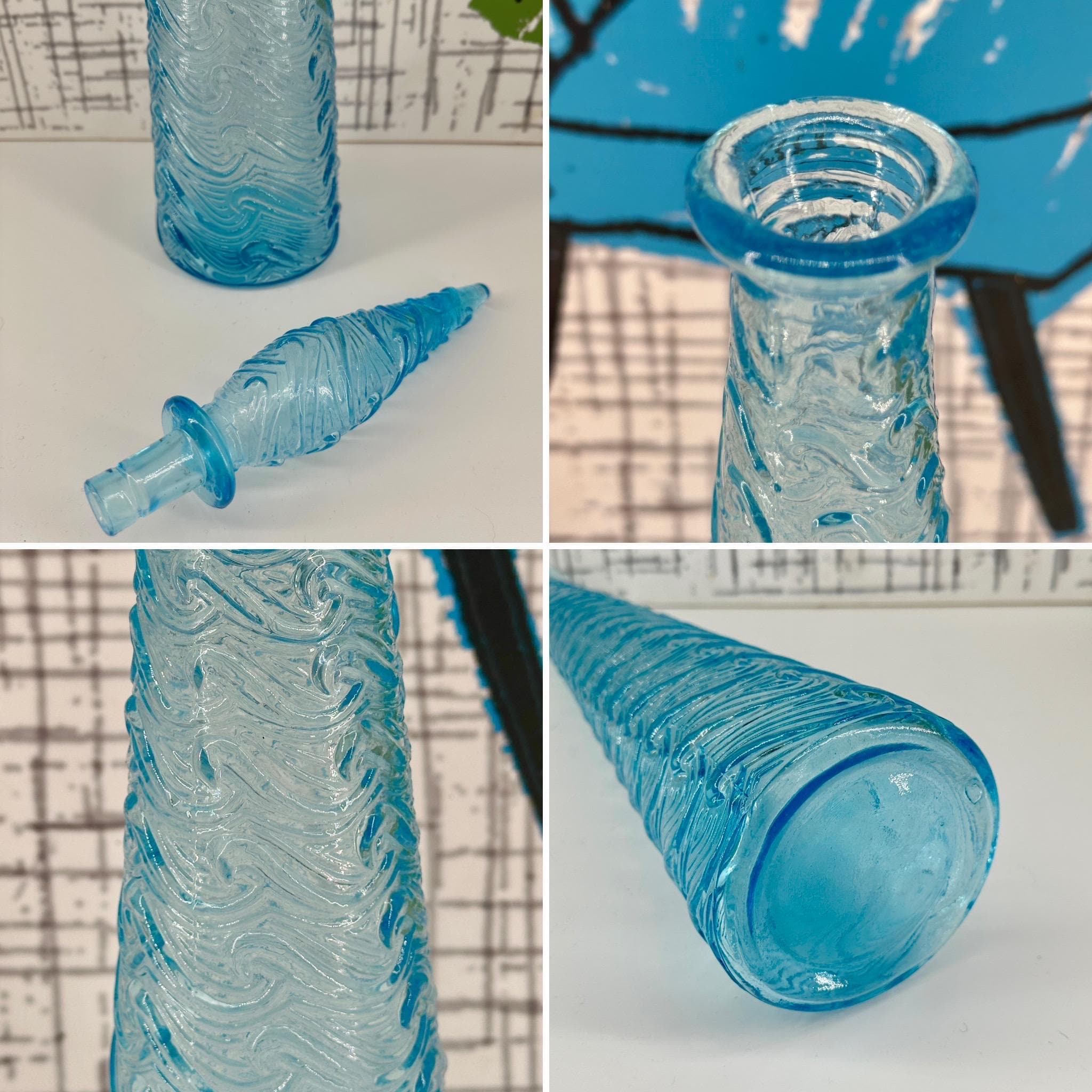 Vintage Empoli Italian genie bottles in the wave pattern - available in a variety of colours for individual sale. All with original matching glass stoppers, in excellent vintage condition. See individual descriptions below.