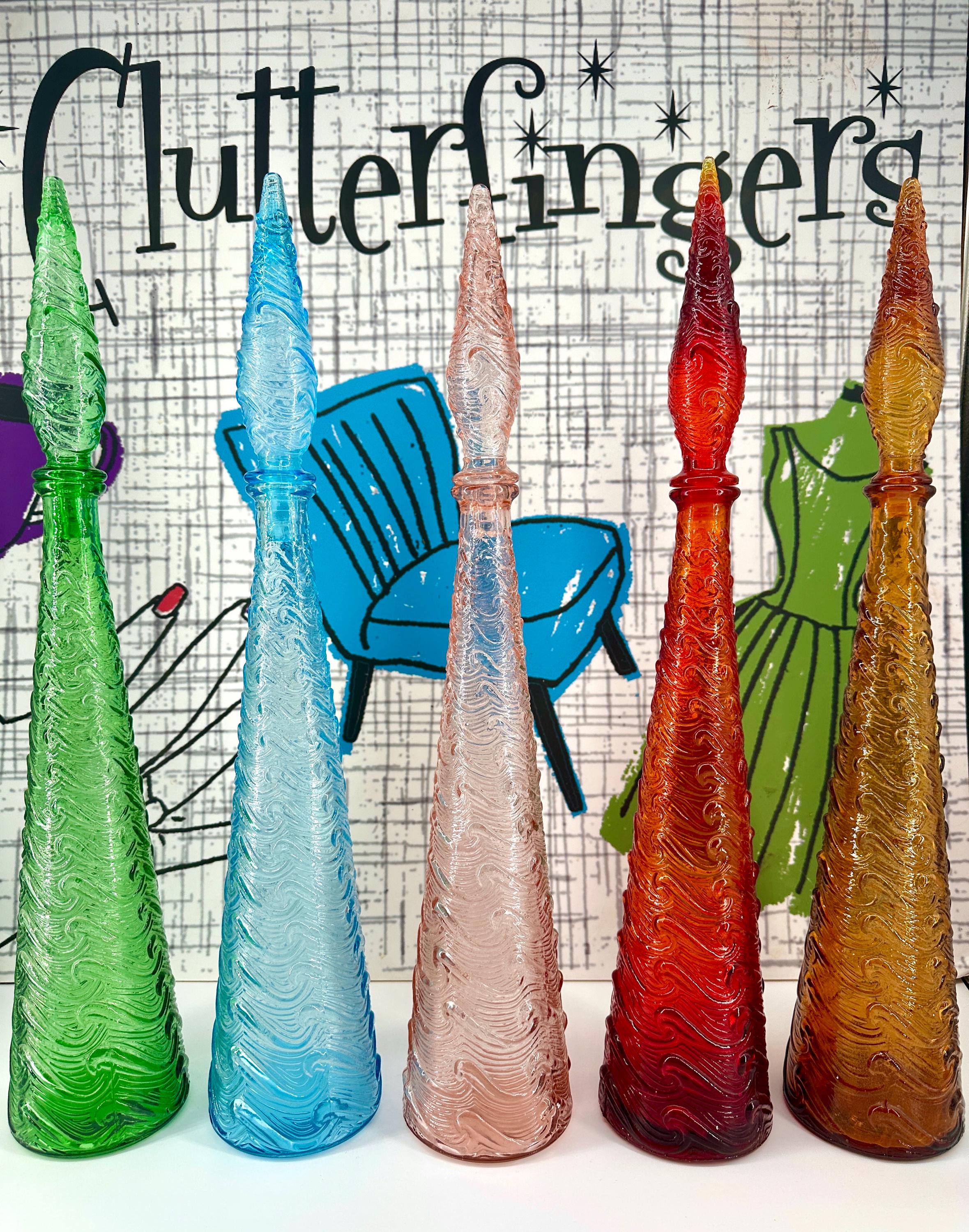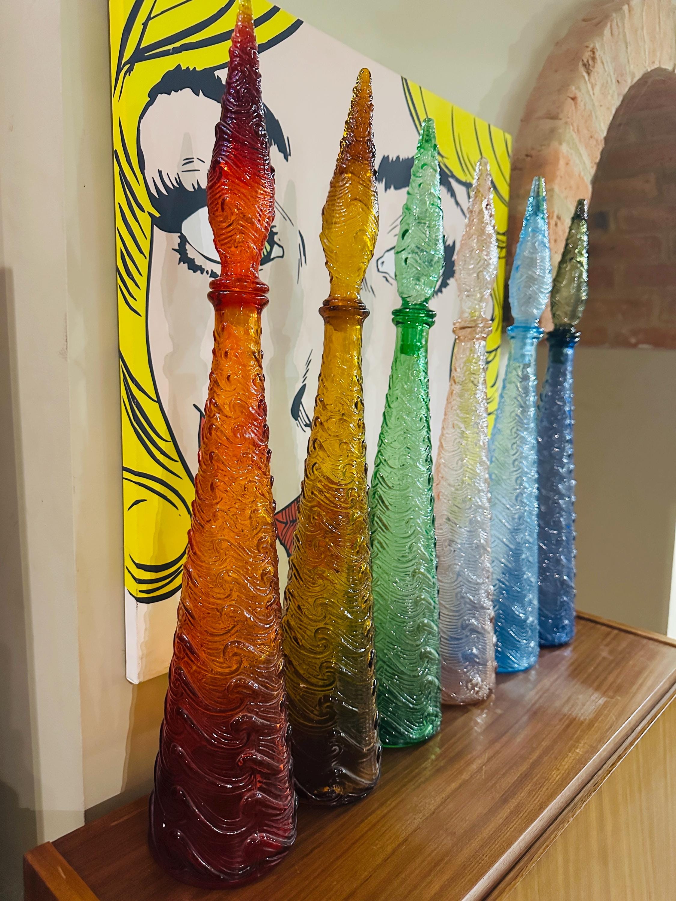Empoli Wave Pattern Genie Bottles - Vintage Italian Glass Decanters available in a range of colours