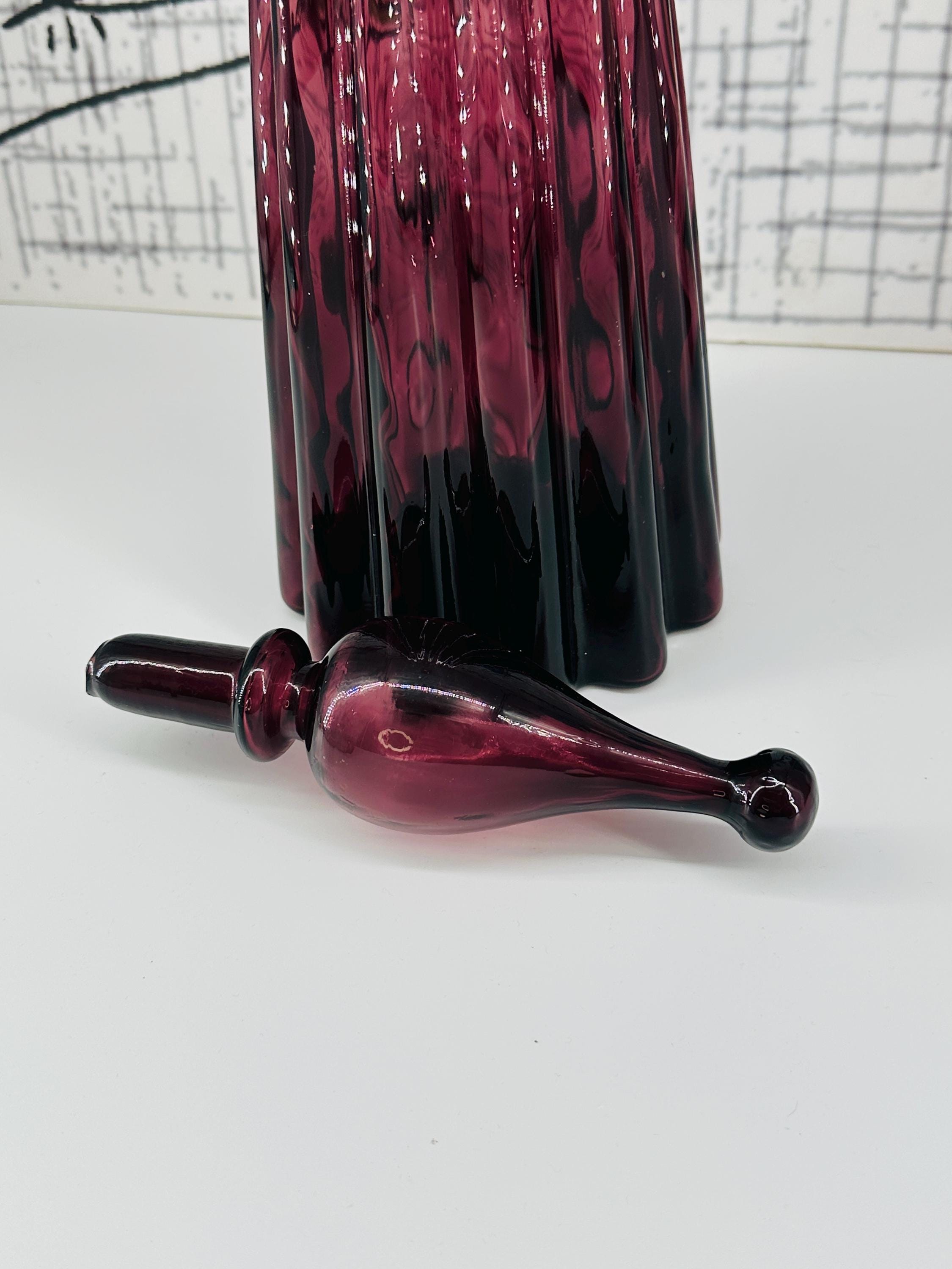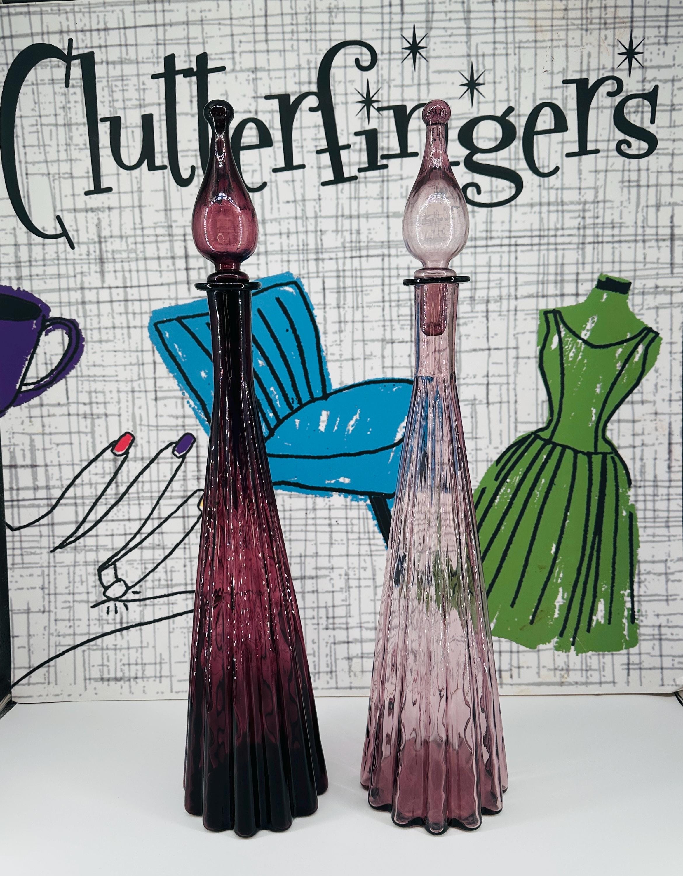 Empoli Vintage Italian Genie Bottles in the Bobble Top Fluted Shape in Purple and Lilac