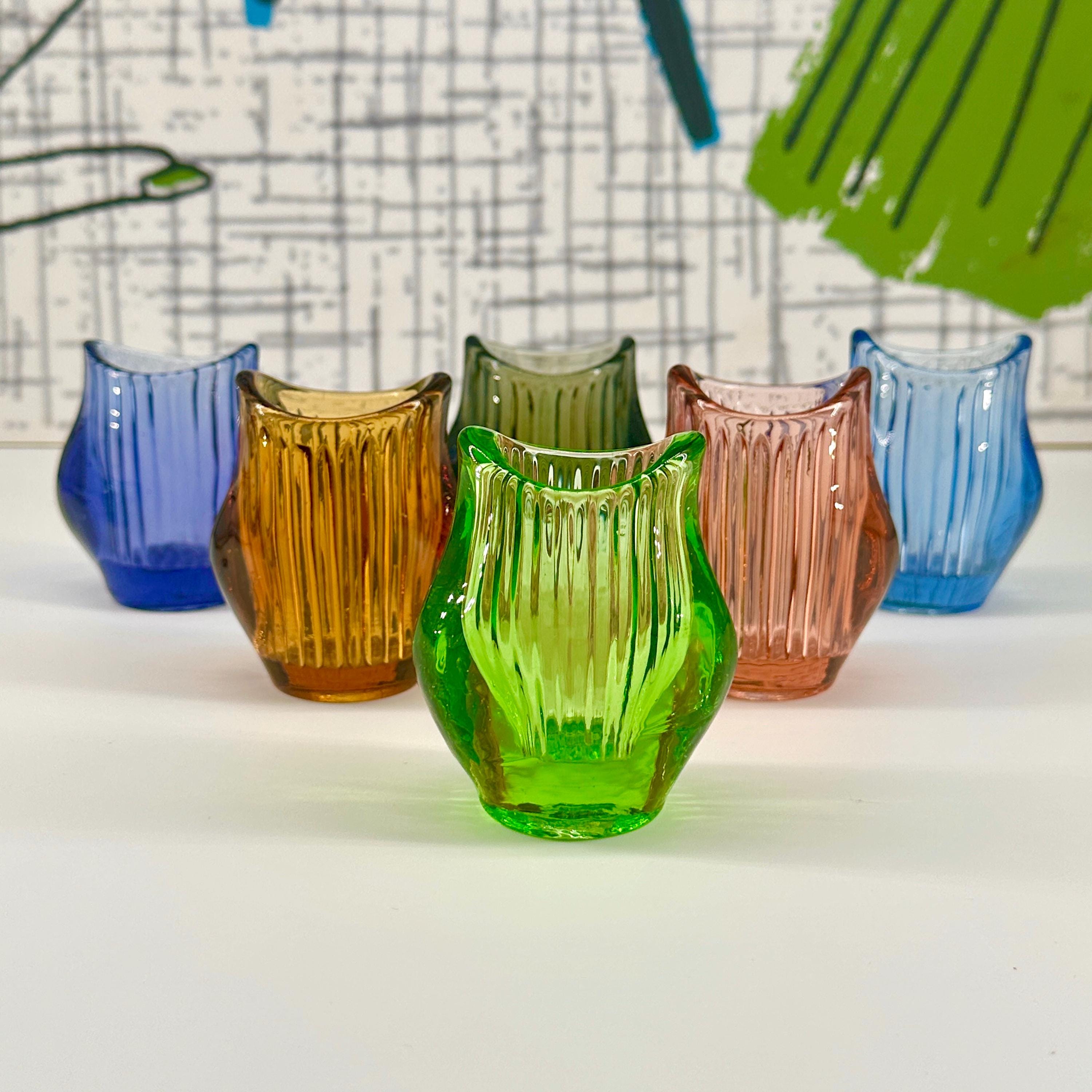 A 1960s Polish design classic, these tiny harp-shaped vases were conceived by one of the iconic designers of the 'Polski New Look' mid century era and are now highly collectible.