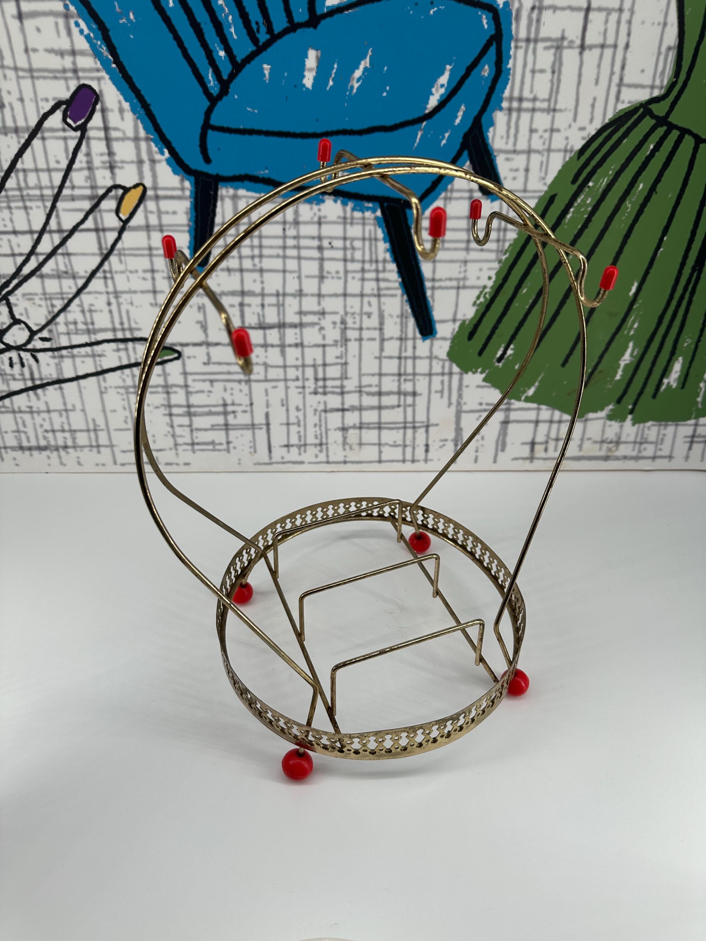 Vintage brass display stand trimmed in red