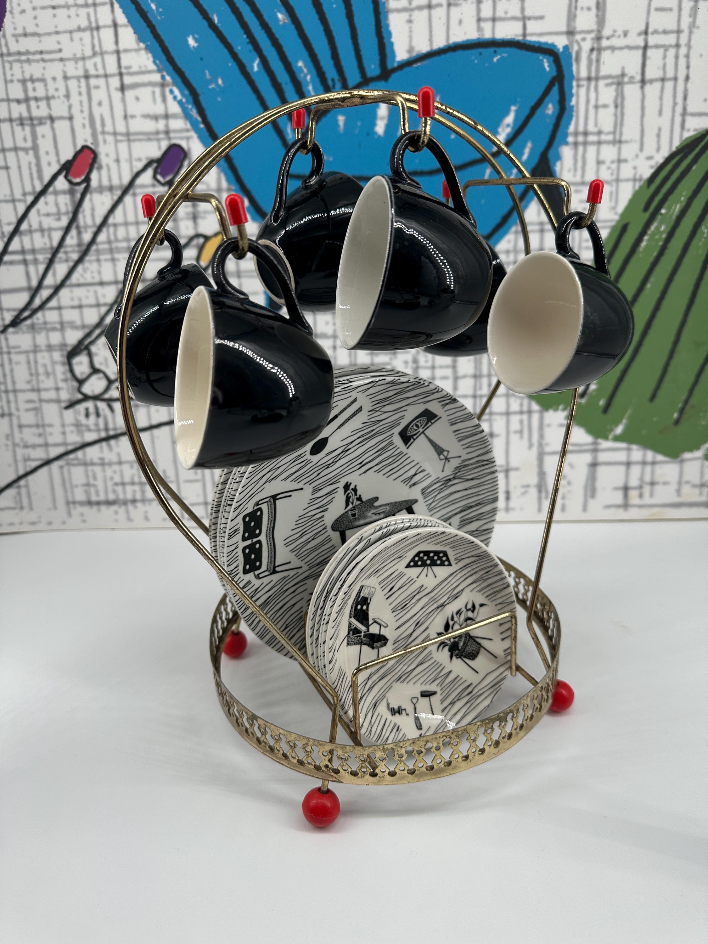 Ridgway Homemaker Complete 22-Piece Coffee Set for Six, with Vintage Brass Display Stand