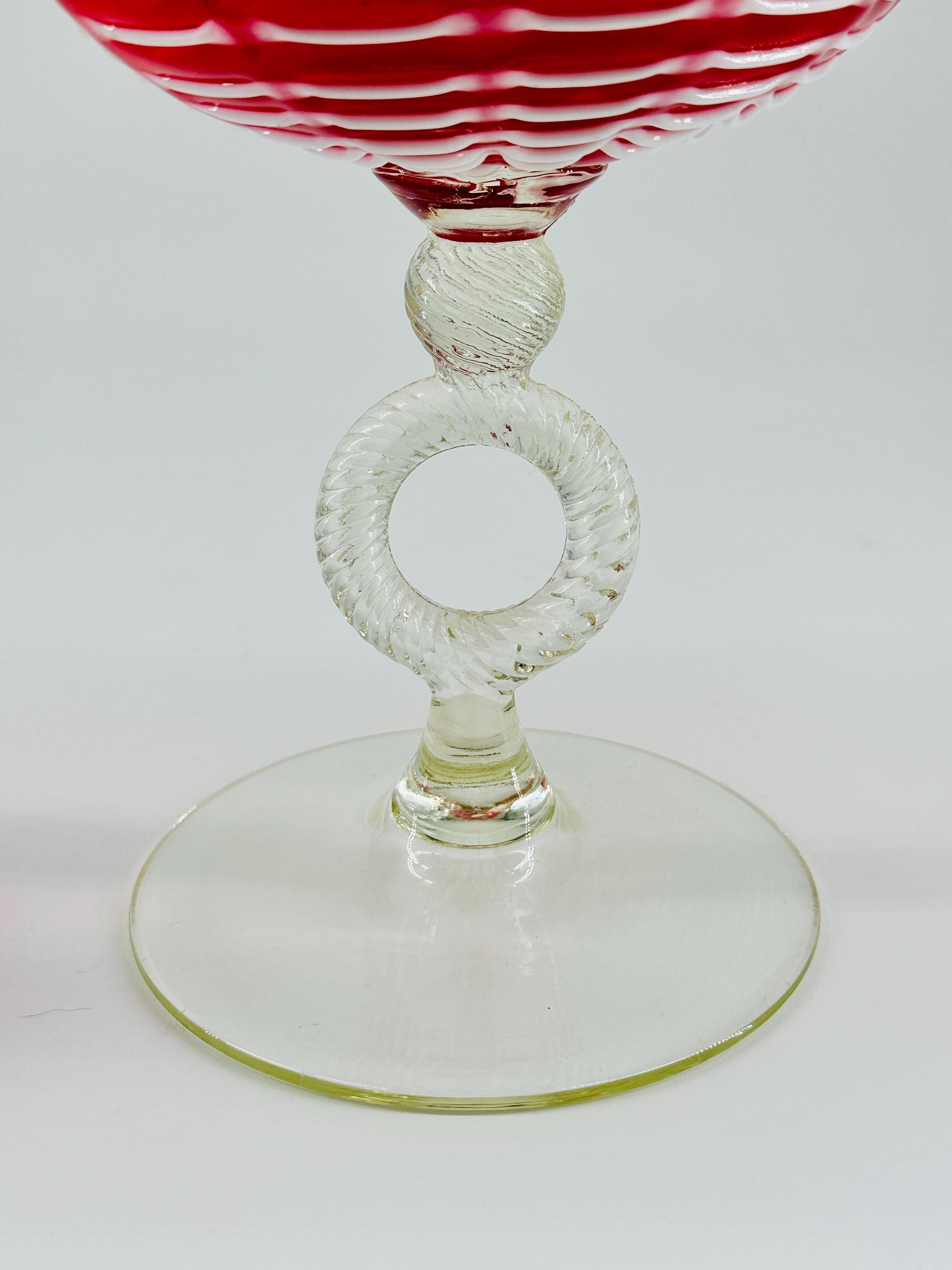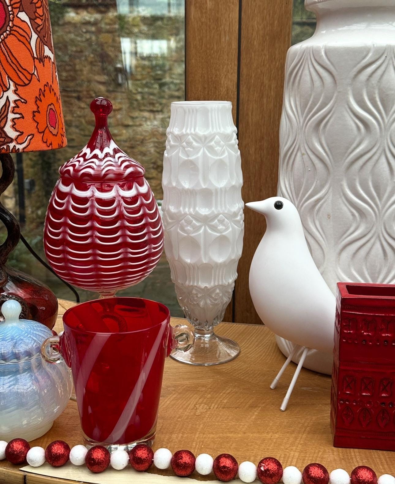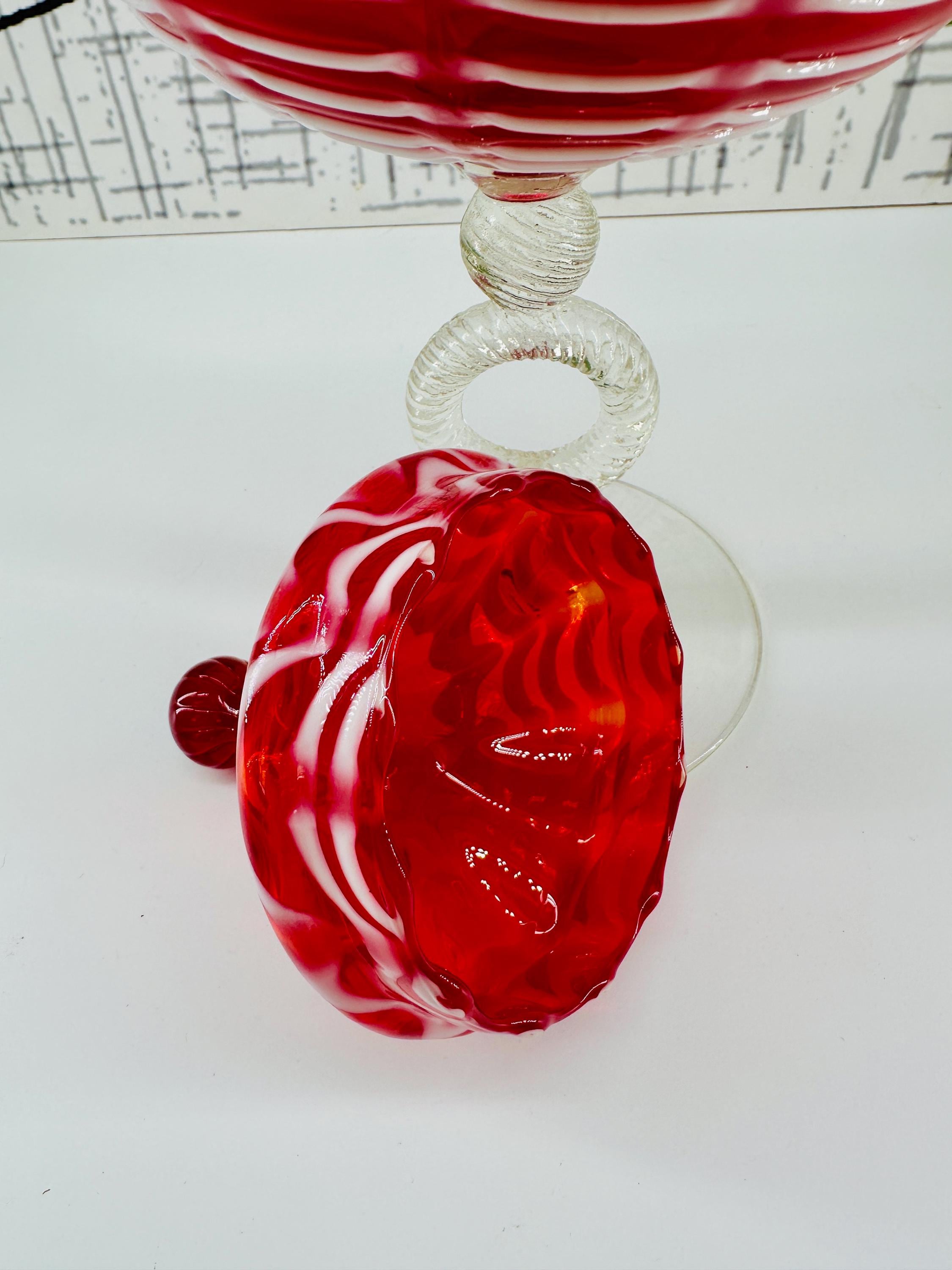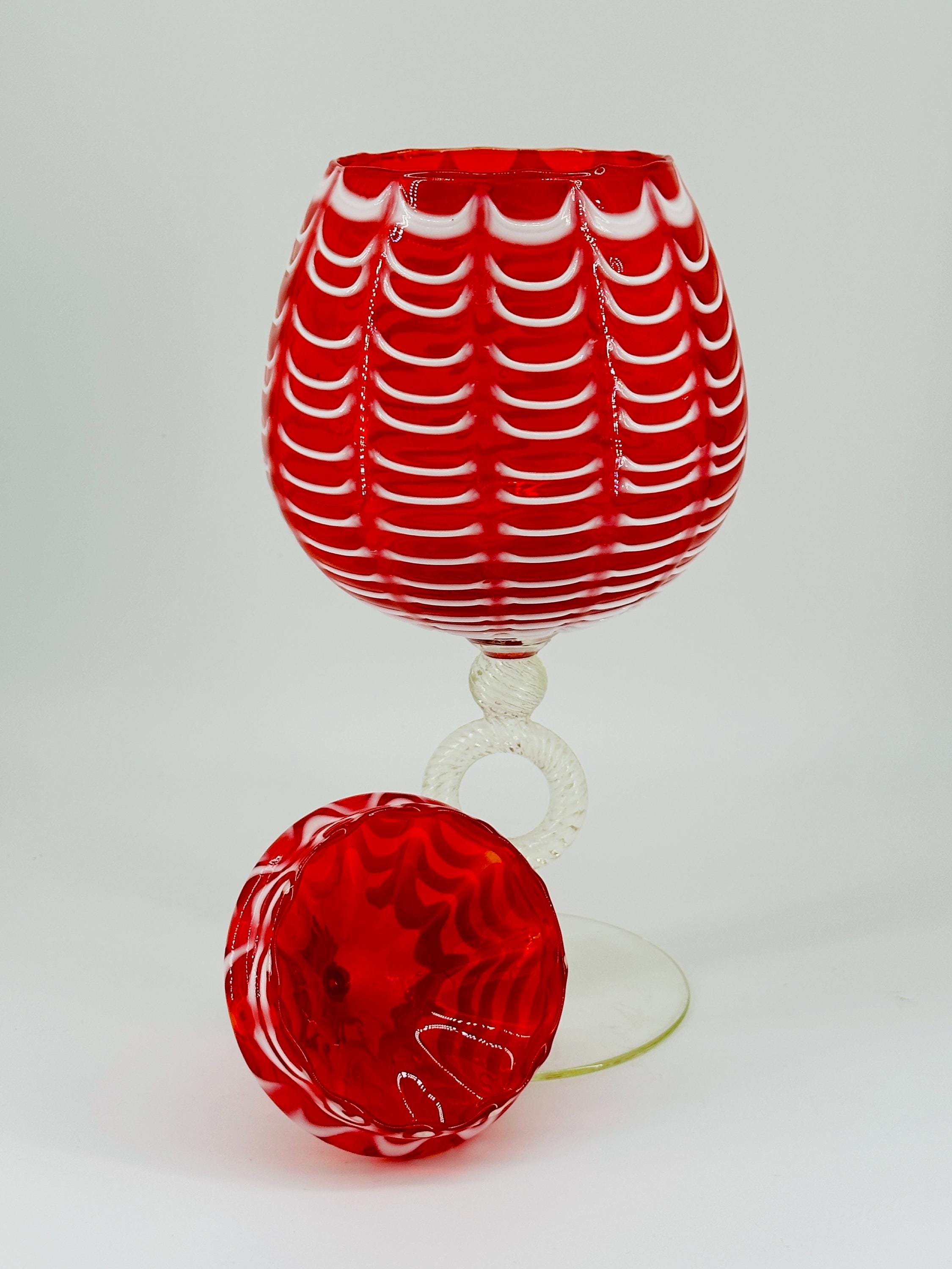 Empoli Fenicio Bonbonniere - Red and White Large Vintage Italian Apothecary Bonbon Jar with Circus Tent Lid and Swagged Lattimo Decoration. Wonderful to hold sweets and candies, or to display in a window at Christmas.