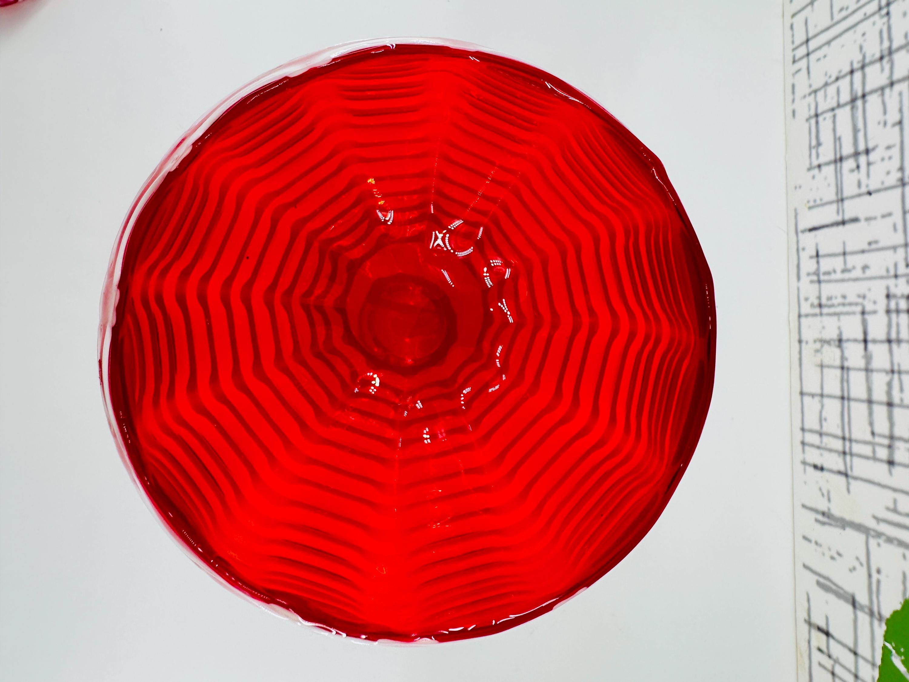 Empoli Red Fenicio Bonbon Apothecary Jar - Large Vintage Italian Bonbonniere with Circus Tent Lid