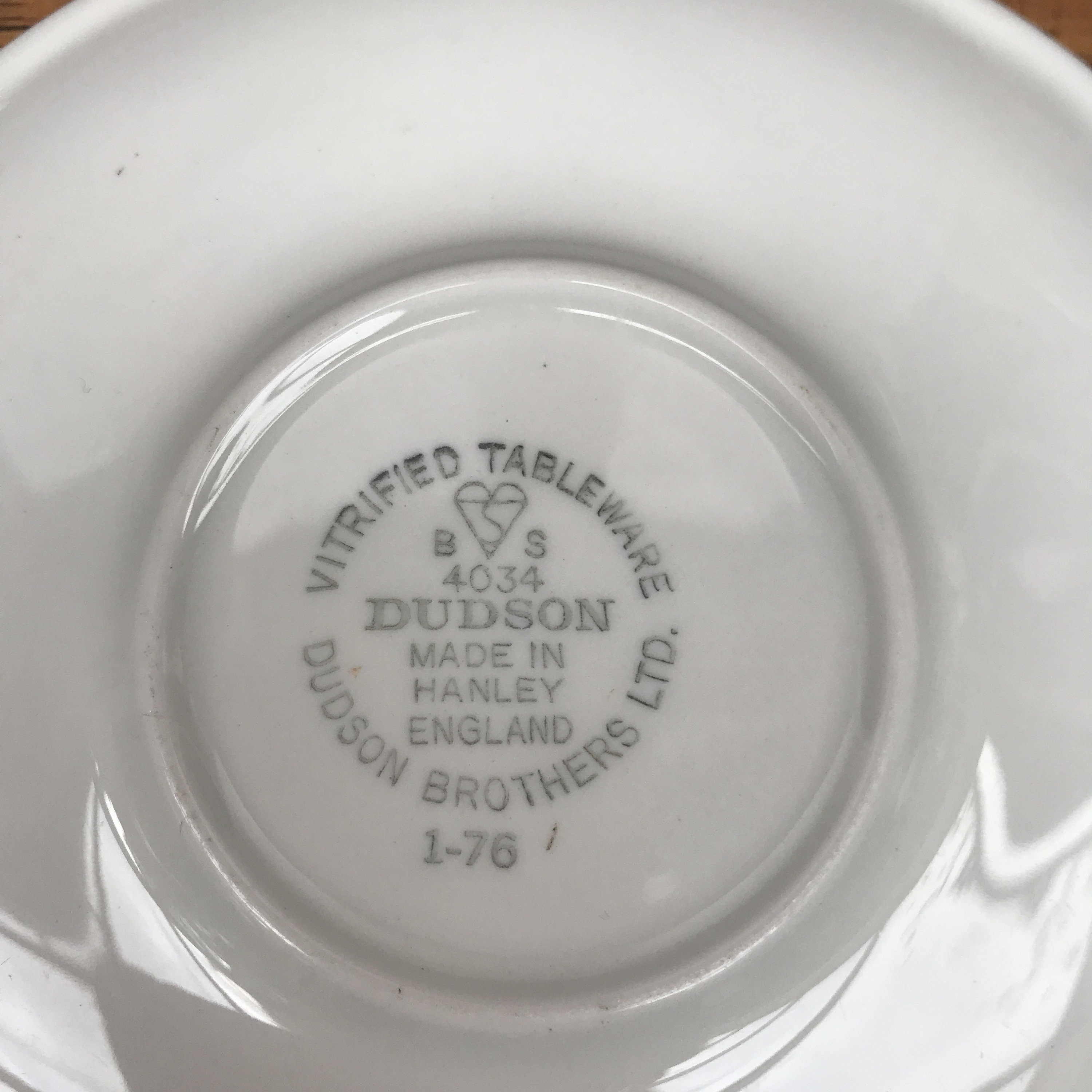 All pieces in good vintage condition. As these pieces are some 40 years old, there may be some very light crazing, light cutlery marks or small areas of wear to the pattern in places. All plates & saucers have a Dudson Bros backstamp.