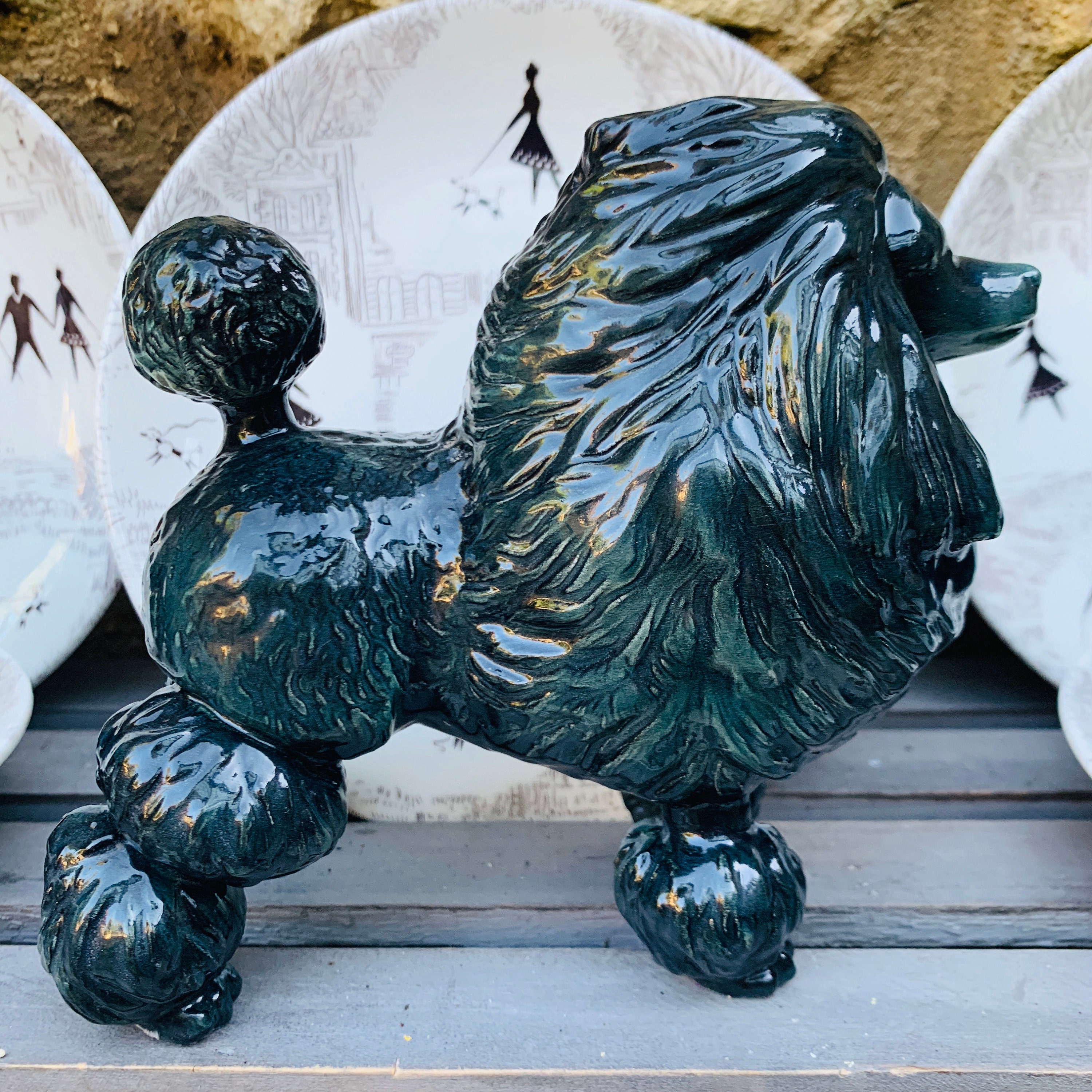Swinnertons Springtime Poodle Pattern china tea set pieces, featuring an impossibly romantic 1950’s ’story on a plate’ of lost poodles and new-found love. Mid-century kitsch monochrome pottery at its absolute best.
