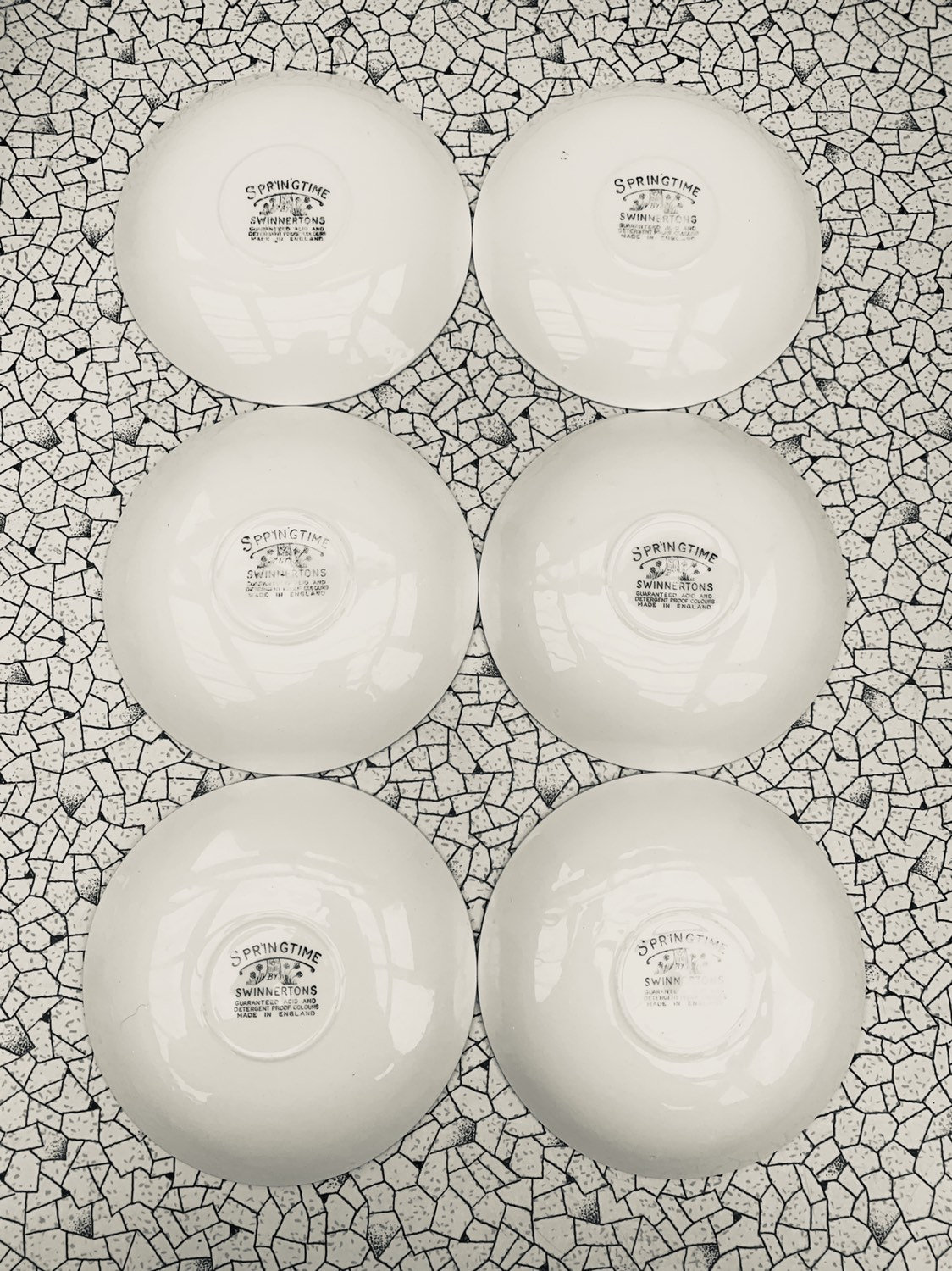 All pieces in good used vintage condition - no chips, cracks, repairs or fading. All plates & saucers have a Swinnertons Springtime backstamp. This range mixes and matches beautifully with Alfred Meakin and Ridgway Parisienne poodle patterned china.