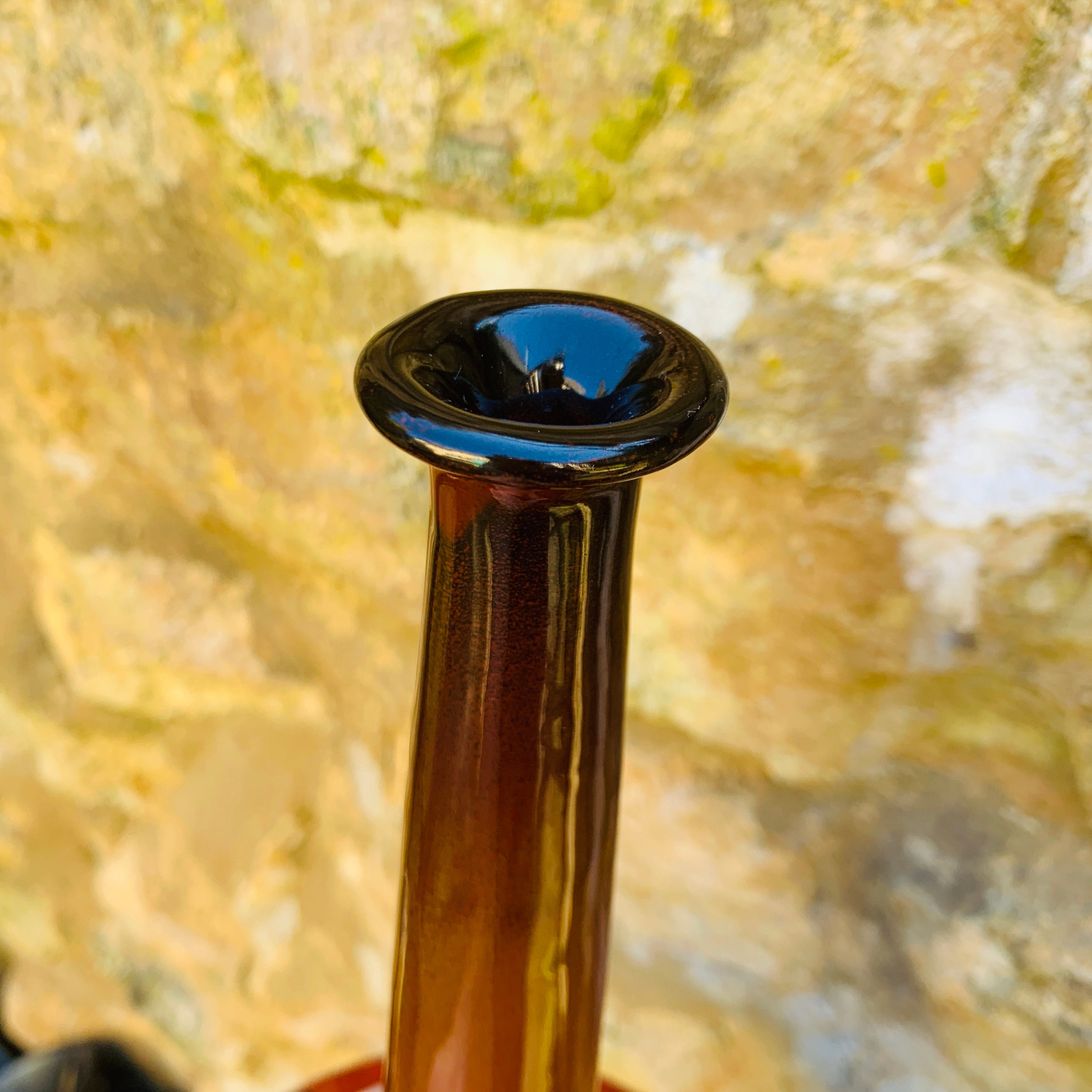 Santo Stefano di Camastra Sicilian Pottery Funnel Vase in Red, Orange & Turquoise, signed and dated Ceramiche La Maga 1980