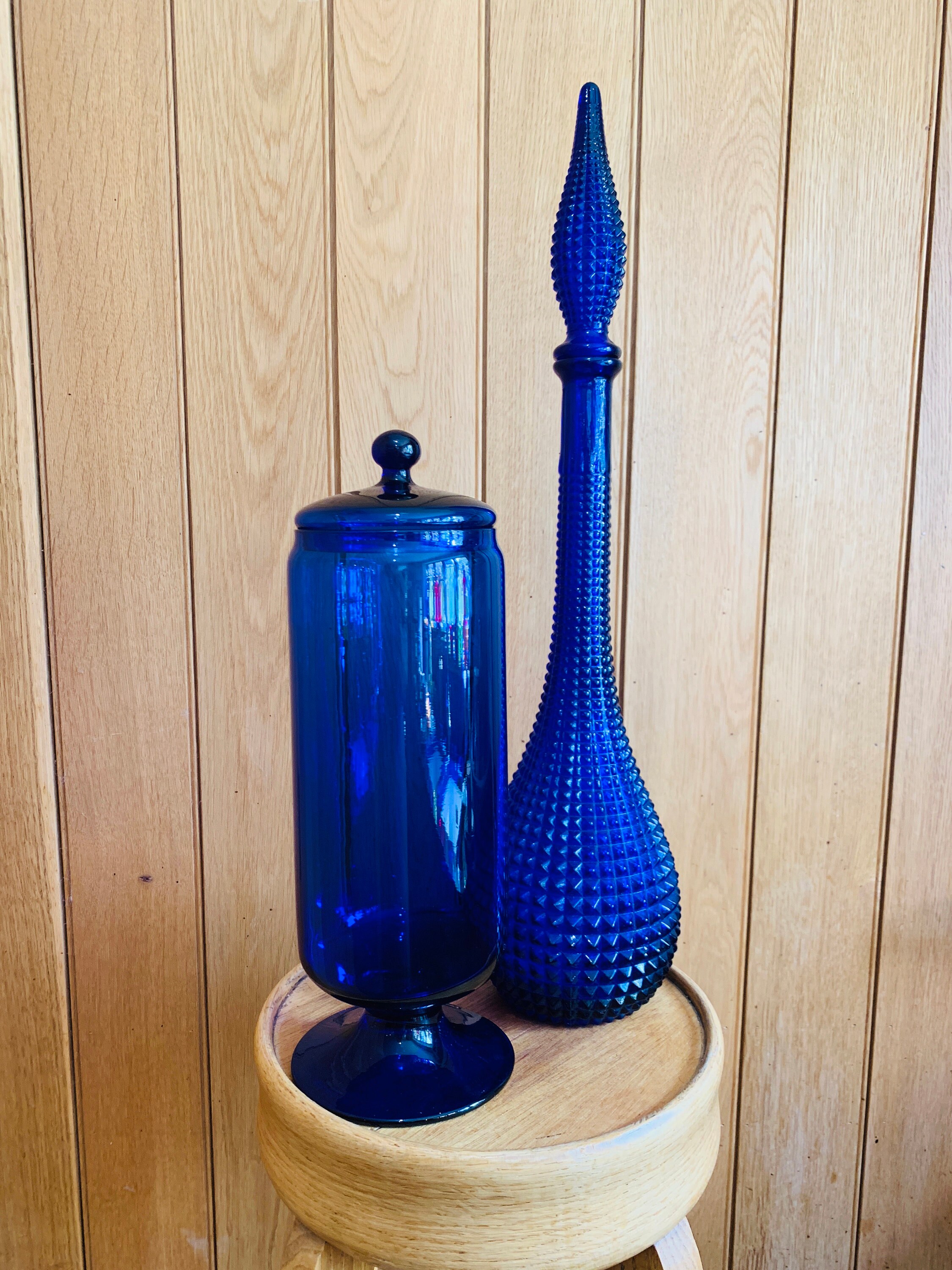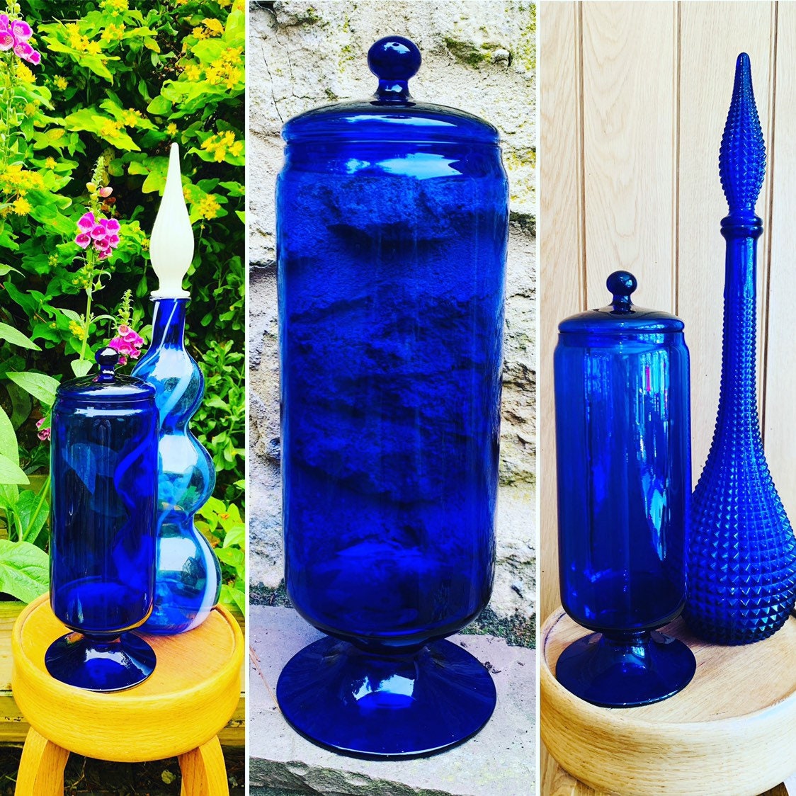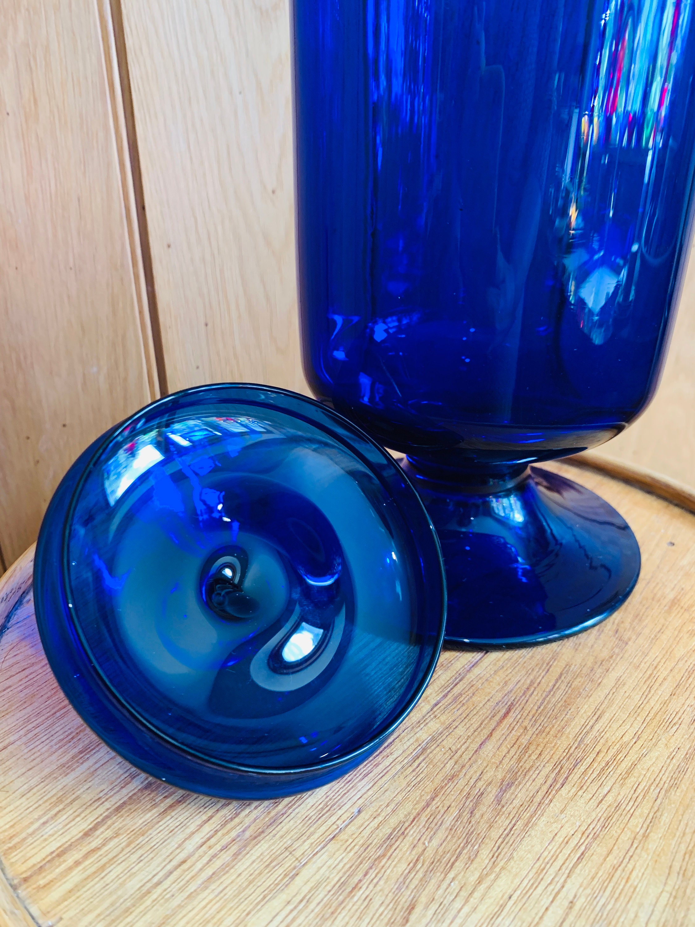 Vintage Empoli cobalt blue/Bristol blue glass lidded footed apothecary jar.